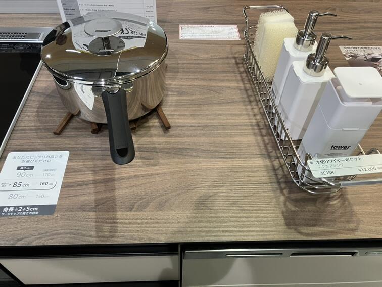 特徴は、天然木や石の質感を再現した耐熱、耐傷性に優れた樹脂製のワークトップです!そして何よりも見た目もすっきり、薄型でスタイリッシュ、インテリアになじむデザインの上、リシェルよりお求めやすい価格帯!