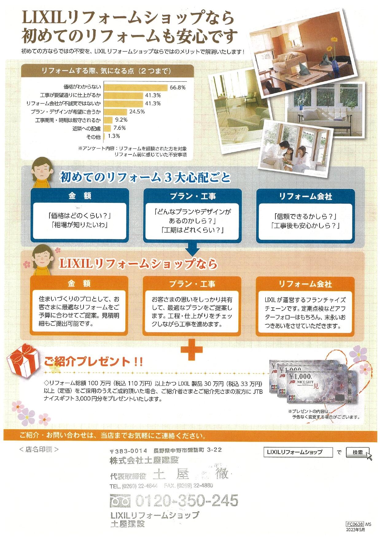 LIXILリフォームショップ土屋建設では、リフォームをお考えのお知りあいをご紹介頂き、ご成立すると