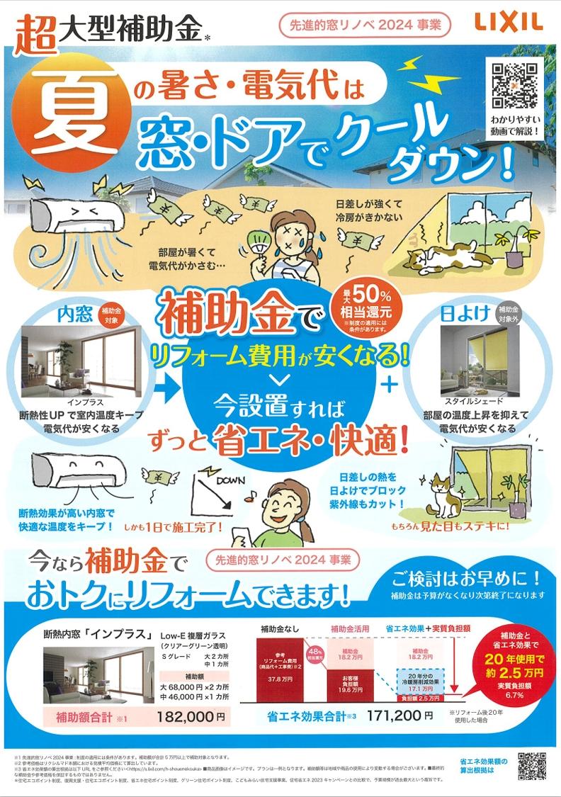 ◎内窓(インプラス)は補助金対象→→→お家の断熱性UPで室内温度をキープ、電気代が安くなります。