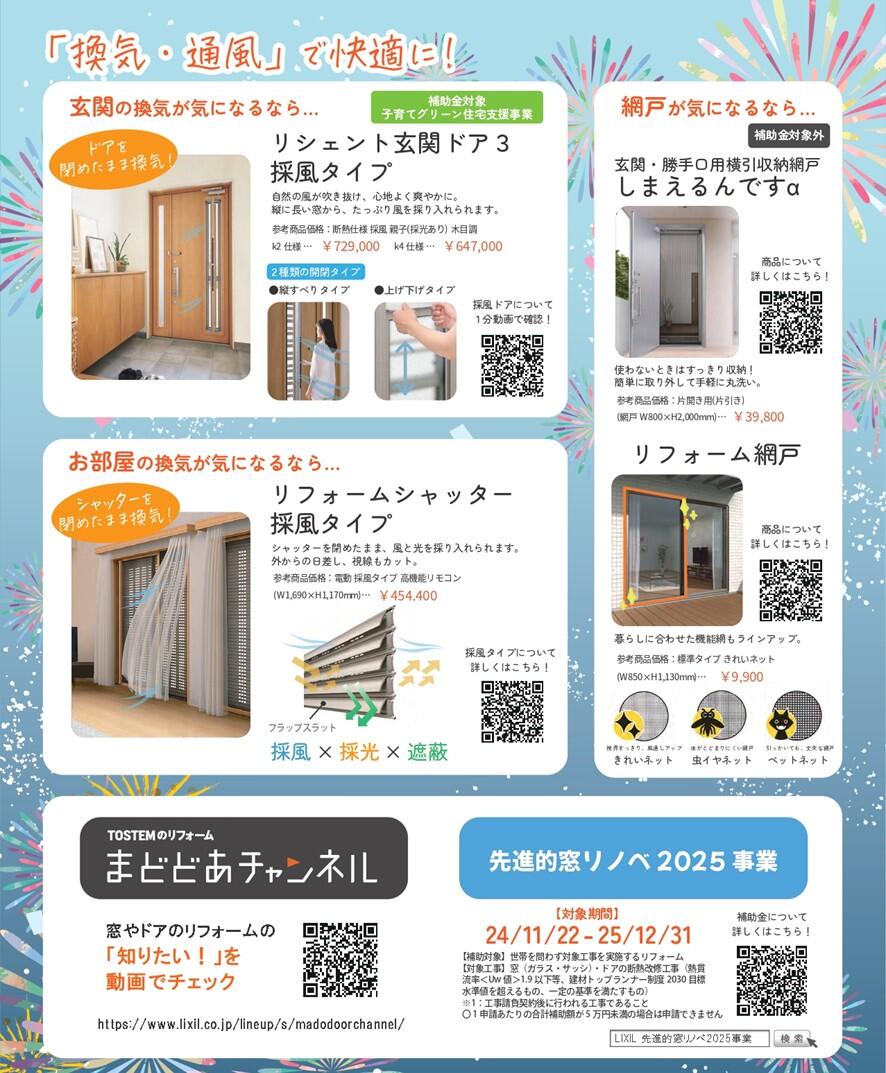 ◎取替窓 リプラス(補助金対象)...今ある窓枠に新しい高性能窓を取り付けることで熱気をガード。