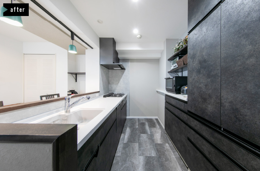 「キッチンのデッドスペースをなくしたい」「収納を多くしたい」そんなご要望から生まれた築30年マンションのフルリフォーム。