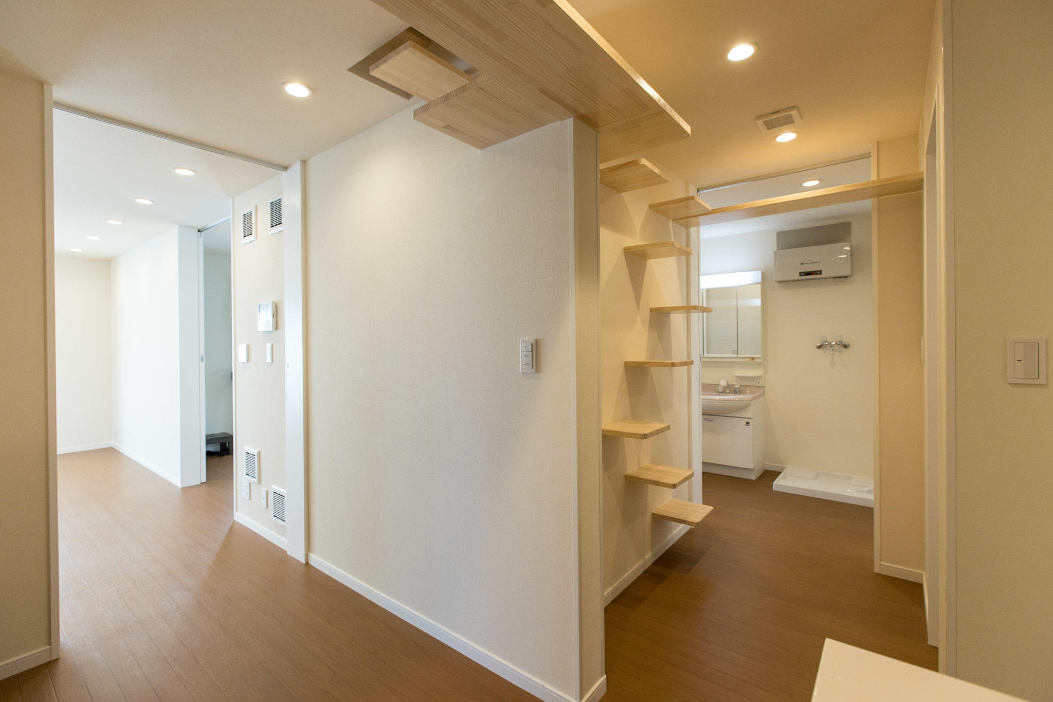 廊下、洗面所、そして1階から2階へとつながるウォークを作りました。