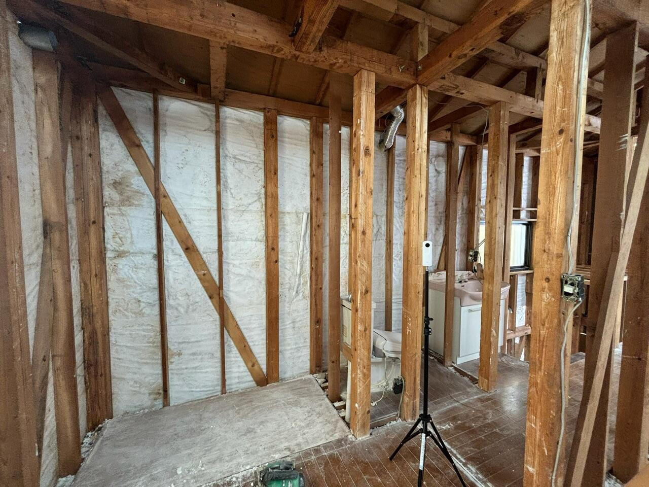 耐震リフォームを行いました。 地震に強い家を実現するために、 既存の梁や柱に補強を加えています。 土台敷きもご覧の通りキレイになっています。