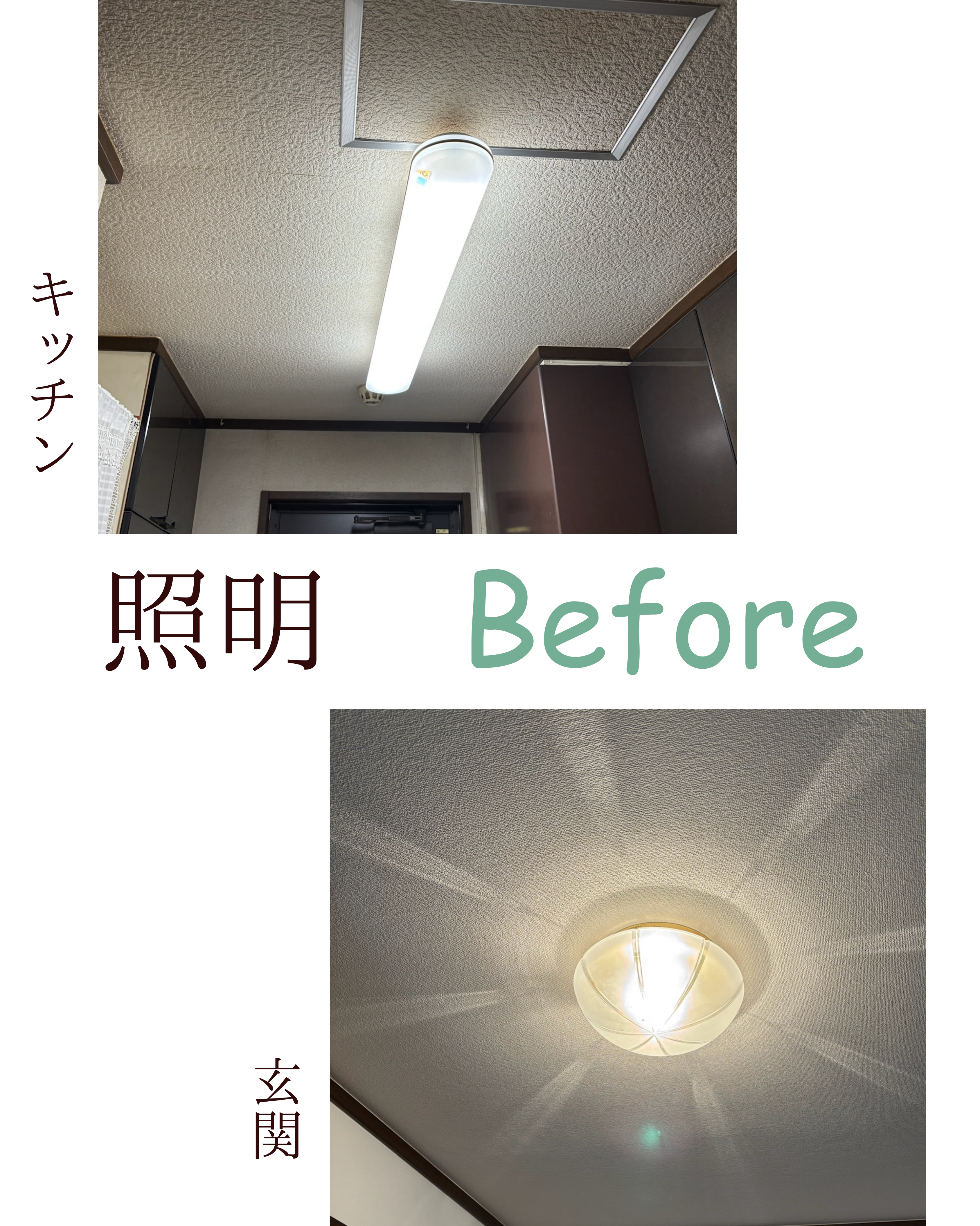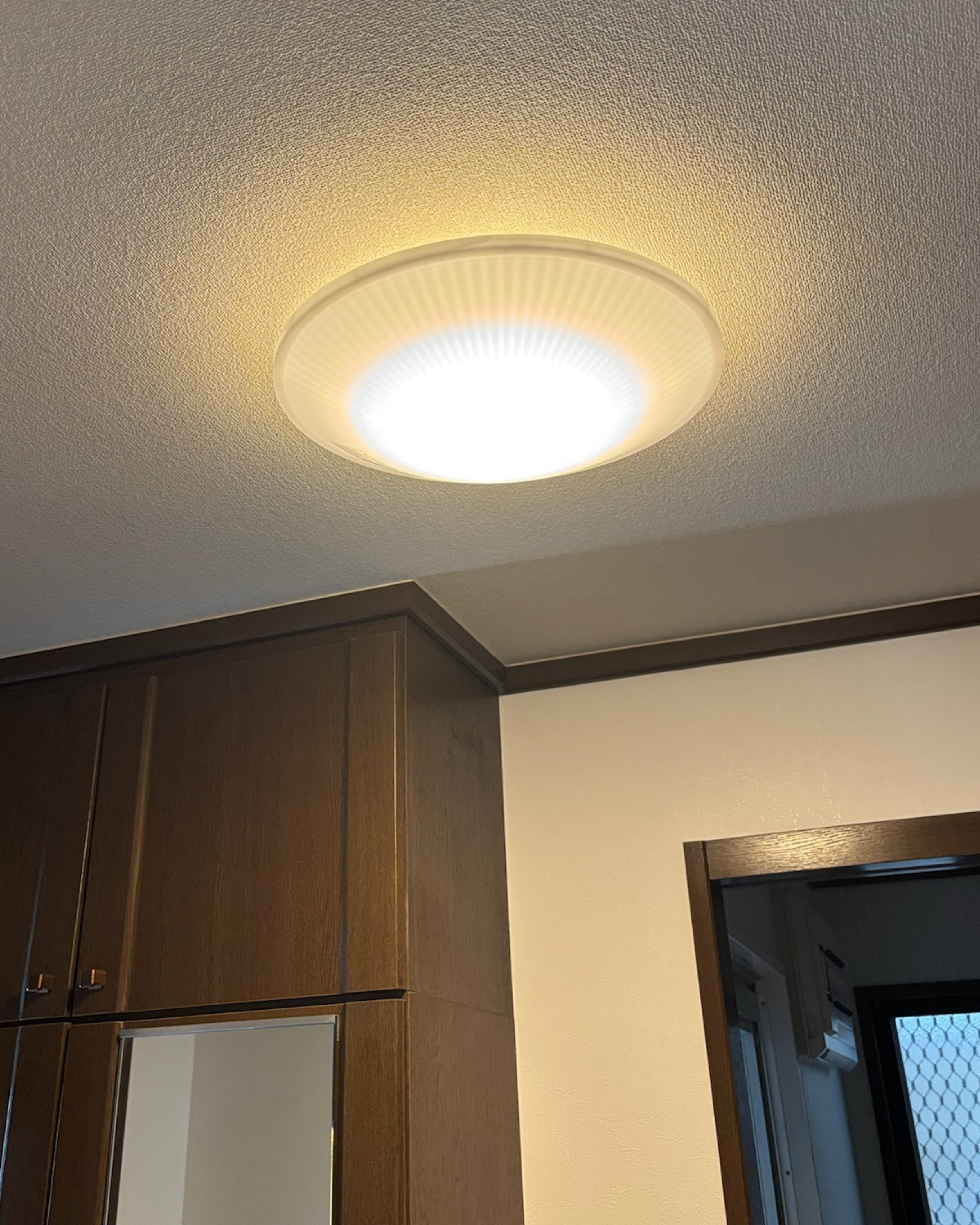 玄関とキッチンの照明リフォームを行いました 天井のクロスを変更することなく 照明をつけかえすることができています