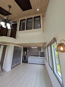 対面キッチンで開放的なLDKへ!木目天井が映える空間
