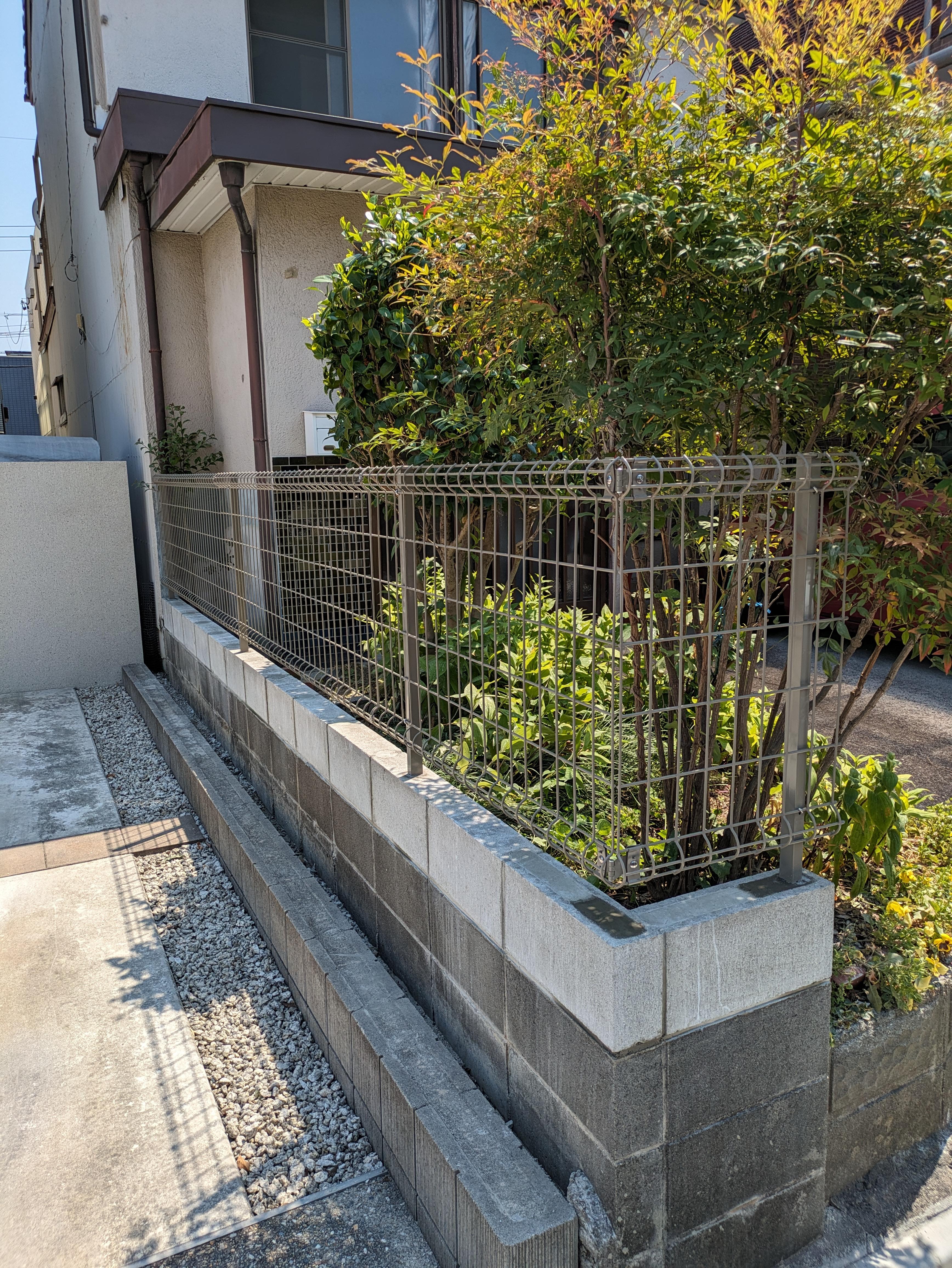 お天気にも恵まれて工事は無事2日間で終了いたしました。今まで外壁がブロックで覆われていましたが、フェンスにしたことで景観もよくなり、とてもきれいな仕上がりとなりました。