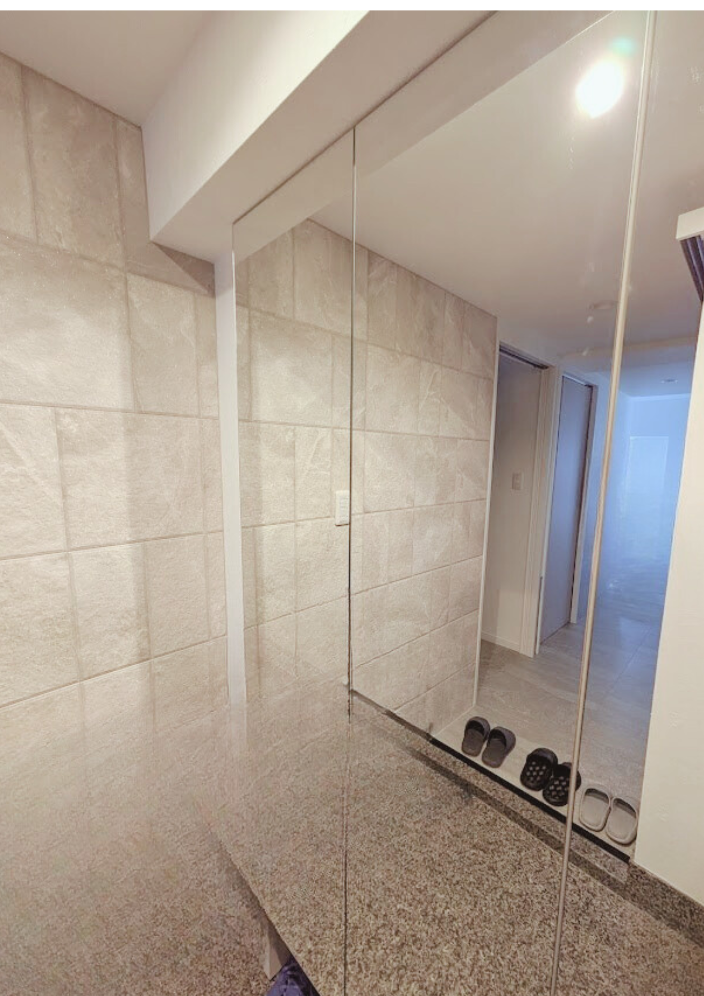 K様のご要望であった「明るく、使いやすい玄関」を、全面鏡張りの新しい靴箱で実現できたことを、私も大変嬉しく思っております。鏡の持つ空間を広く見せる効果と、お出かけ前の身だしなみチェックができる利便性も実現できましたね。