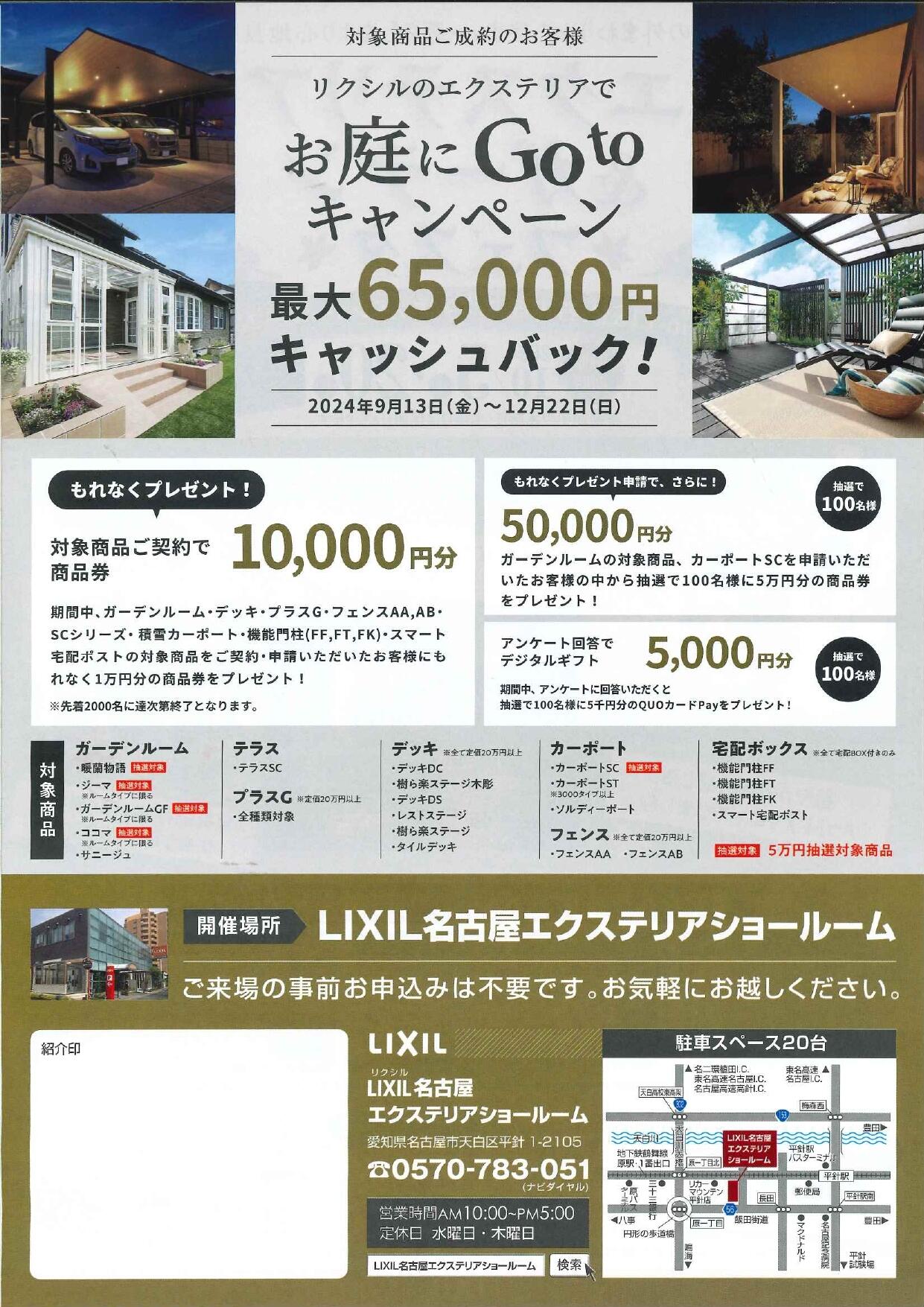 エクステリアでお庭にGotoキャンペーンも開催しておりますので、