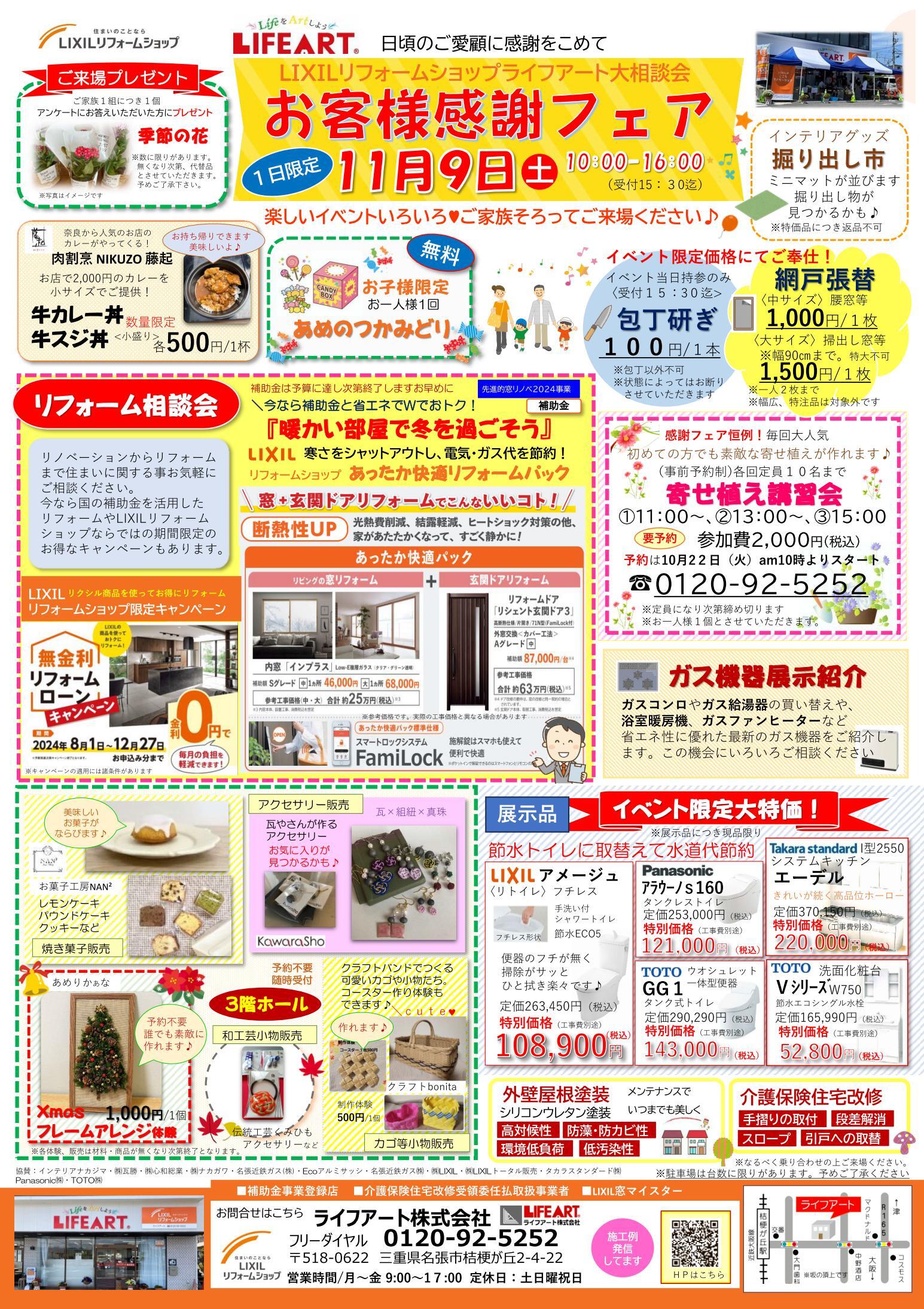 11月9日(土)10時~16時 ライフアートお客様感謝フェア