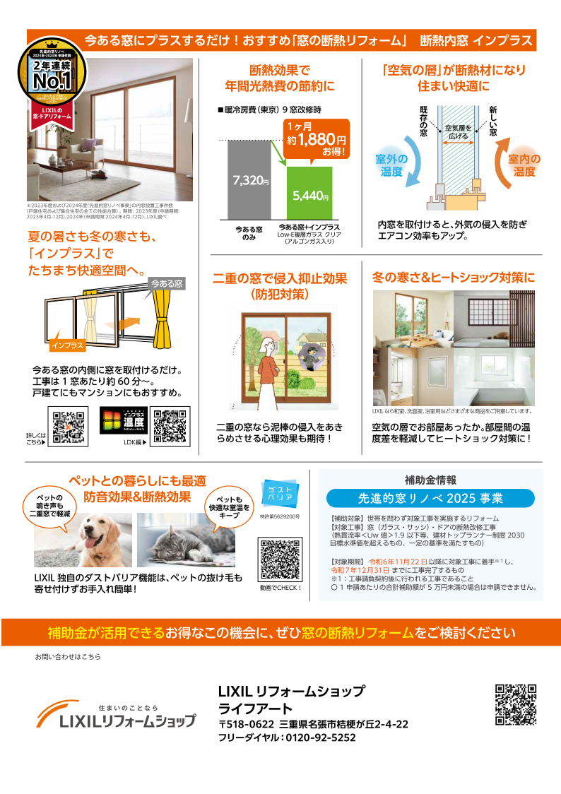 冬の寒さに効果抜群!ヒートショック予防・防犯・防音におすすめの「内窓取付」は補助金対象です。