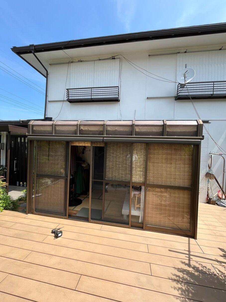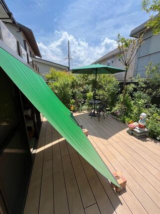 美しいお庭のあるお家のテラスに、LIXILスタイルシェードを取付けさせていただきました。 夏場、室内に入ってくる熱の約70%は窓からと言われています。 LIXILスタイルシェードの取付けで、太陽の熱の大部分を窓の外側でシャットアウトできるので、室内の温度上昇をしっかり抑えられ冷房の効きがよくなり、約31%の節約になります。