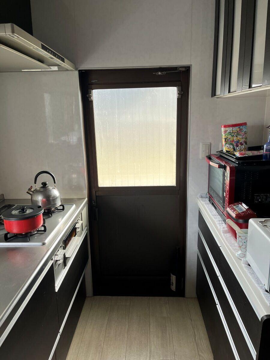 勝手口ドアの劣化とお風呂やリビングの寒さが気になるとのことで、ドアの取替えと内窓の取付のご提案をさせていただきました。