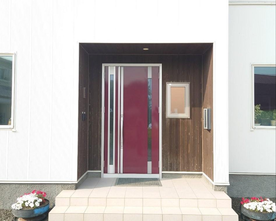 赤がアクセントの玄関のイメージがなるべく変わることがないよう、 外壁に合わせてホワイトを採用しました。