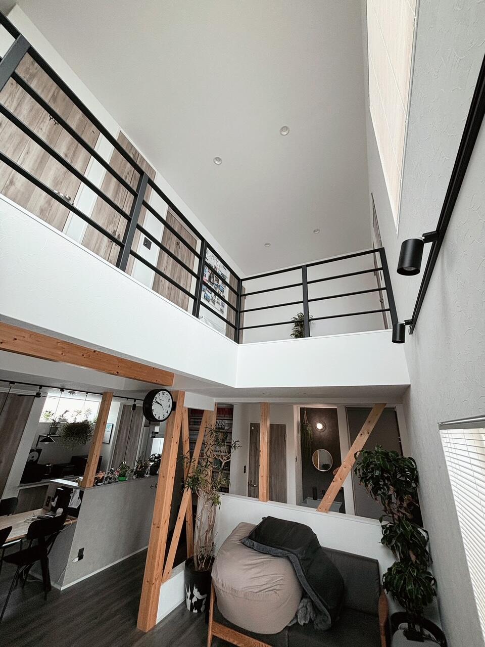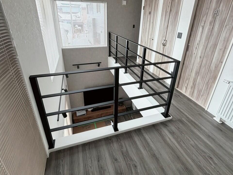 吹き抜け部分の手すりを鉄骨仕様にリフォームしました。 1階2階それぞれの場所にいても家族とのつながりを感じられるご自宅に。 また、解放感がアップし、明るく、スタイリッシュな空間になりました!