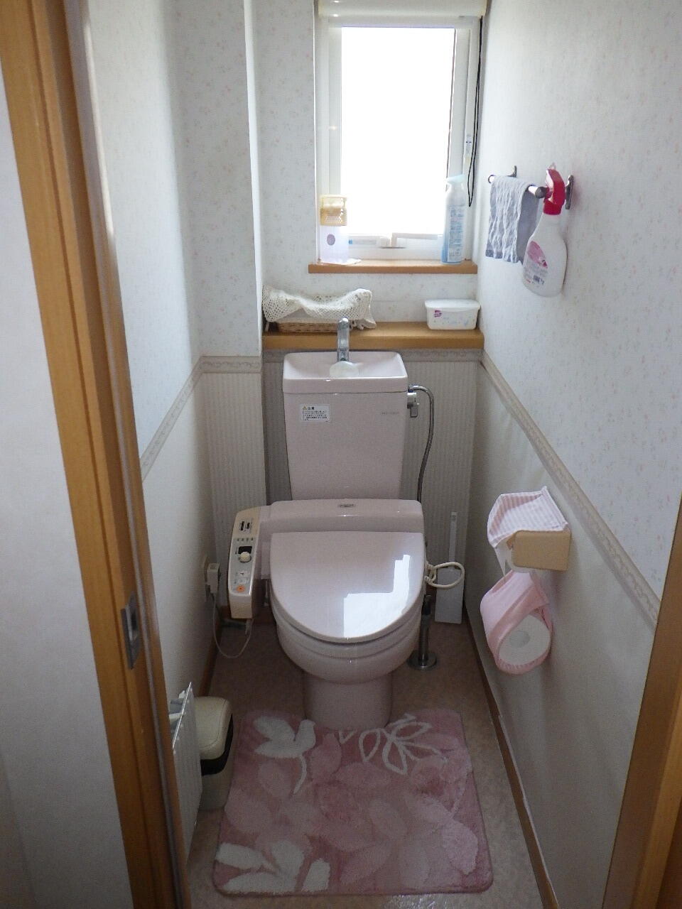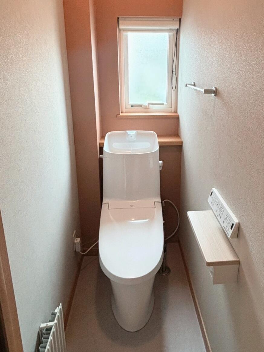 内装もやさしい色味でまとめ、清潔感と落ち着きのあるトイレ空間に仕上がっています。