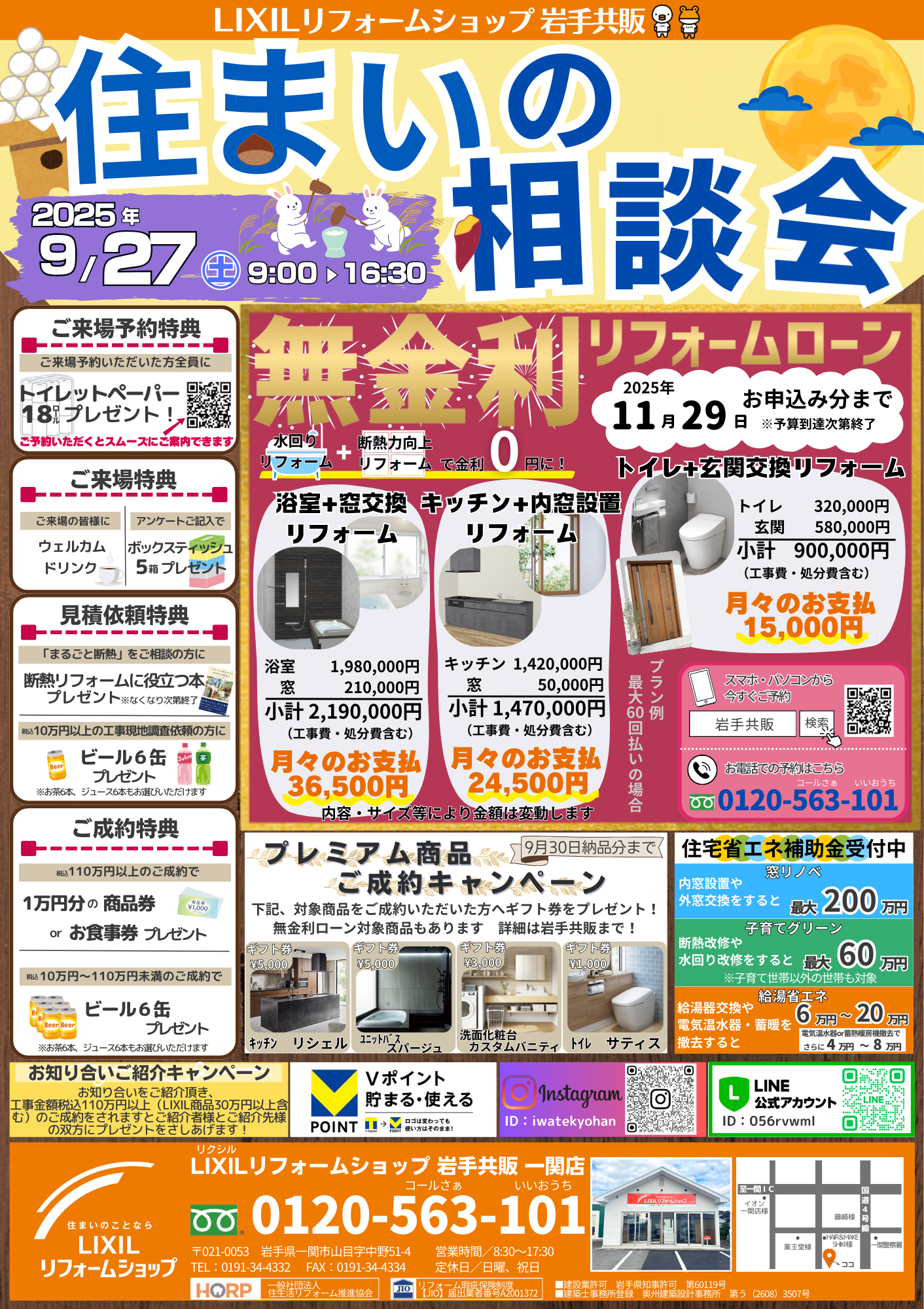 ご予約は電話や岩手共販のホームページ「https://www.iwakyo.co.jp/」、もしくは右上の緑色のボダン「無料でご相談」からお願いいたします。
