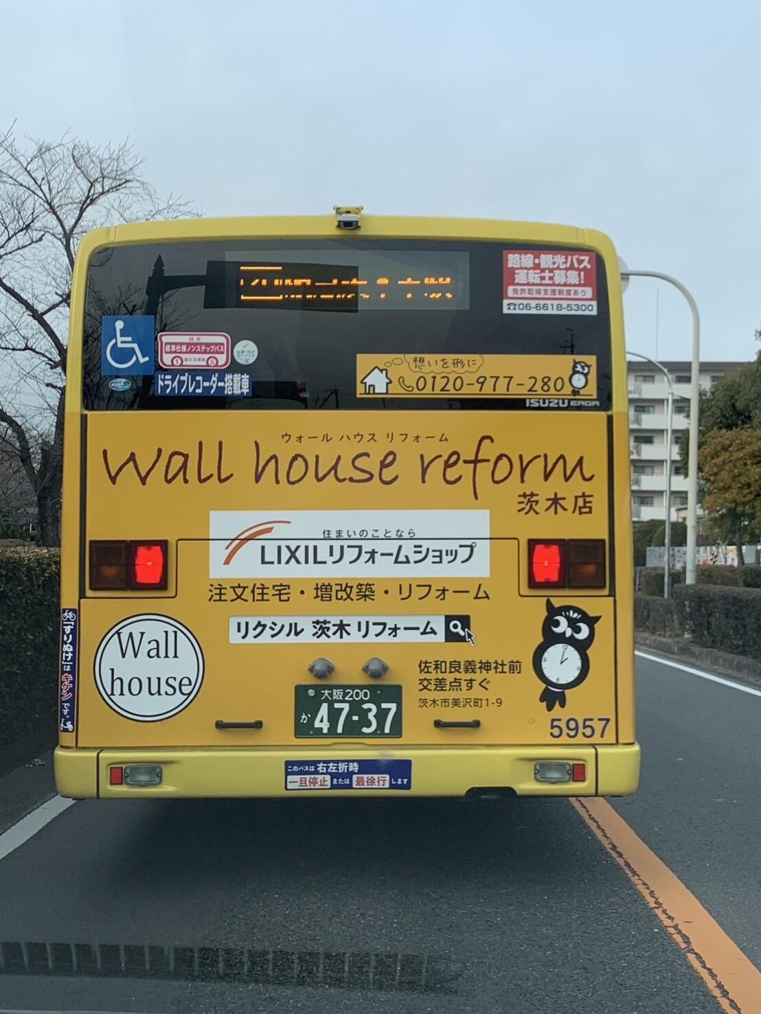 ウォールハウスリフォーム茨木店のラッピングバスが、桜通りを走っているのを目撃しました!