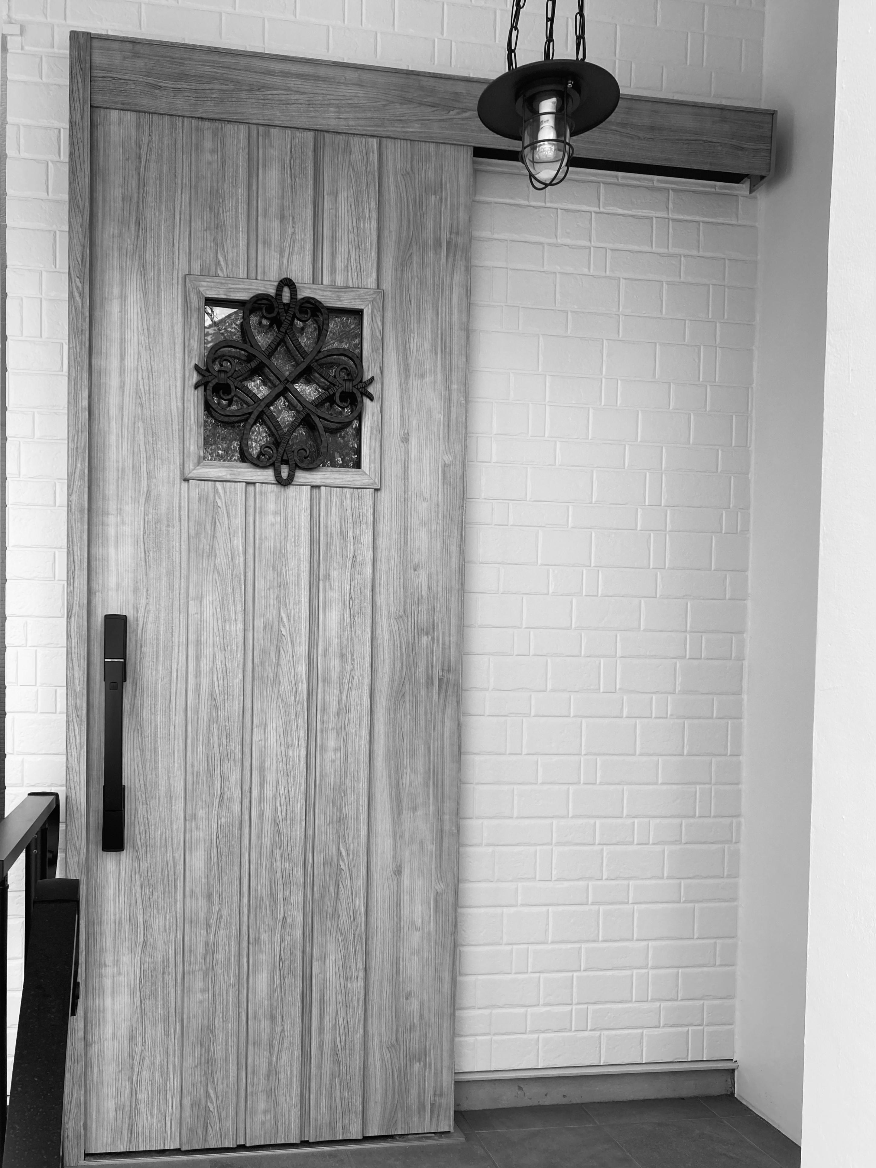玄関の出入りをスムーズにできるよう、ドアから引戸へ変更しました。