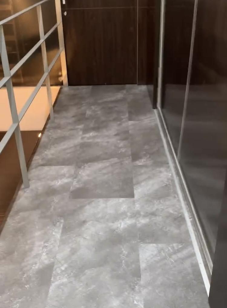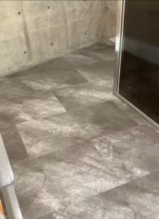 フロアタイルの張替えをさせていただきました。 爽やかな白からストーン柄に張替え、高級感のある雰囲気に変わりました。