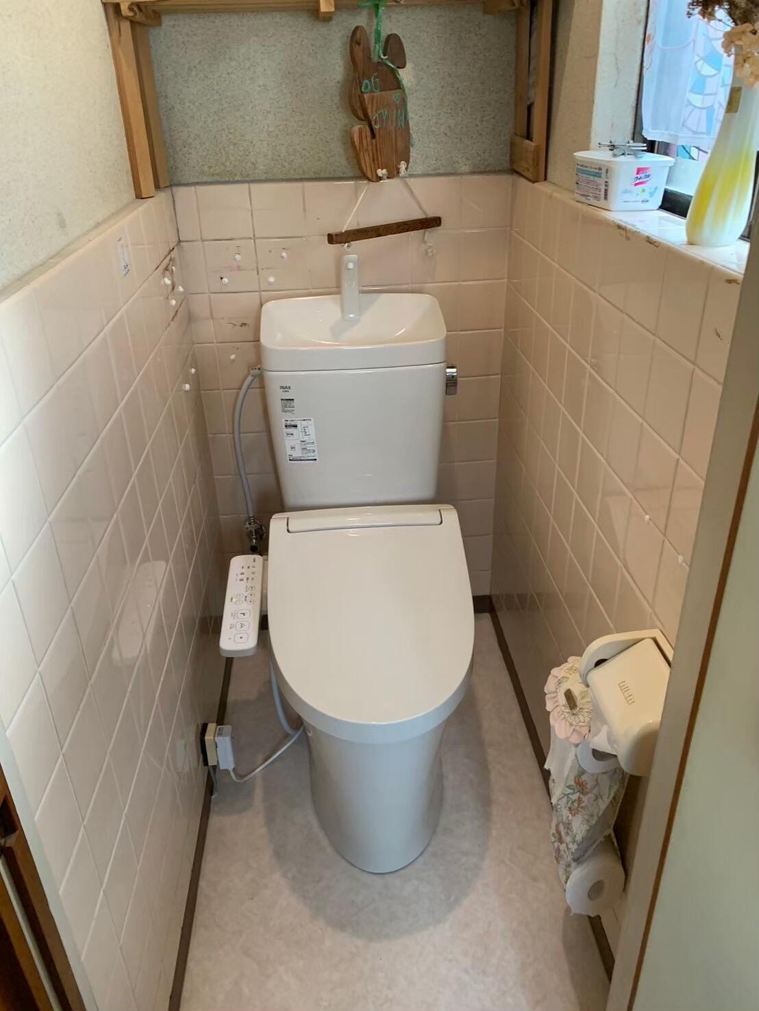 水が少しずつ漏れていたので早急に対応させていただきました。 以前は壁の角に手洗いがありましたが、アメージュリトイレに変更しスッキリした印象になりました。 床のフロアタイルも張替え明るく感じます。