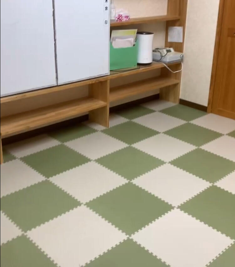 ジョイントクッションなので小さいお子様やキッズルーム、介護施設などで使用されていて、 安全なうえ汚れた場合もお掃除しやすくなっています。