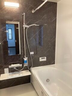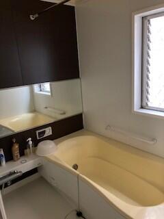 お風呂リフォームをさせていただきました。 築約20年で、汚れや給湯器も気になるとのことで交換いたしました。 浴槽は白、床は汚れが目立ちにくいベージュを選ばれ、以前より明るい浴室となりました。