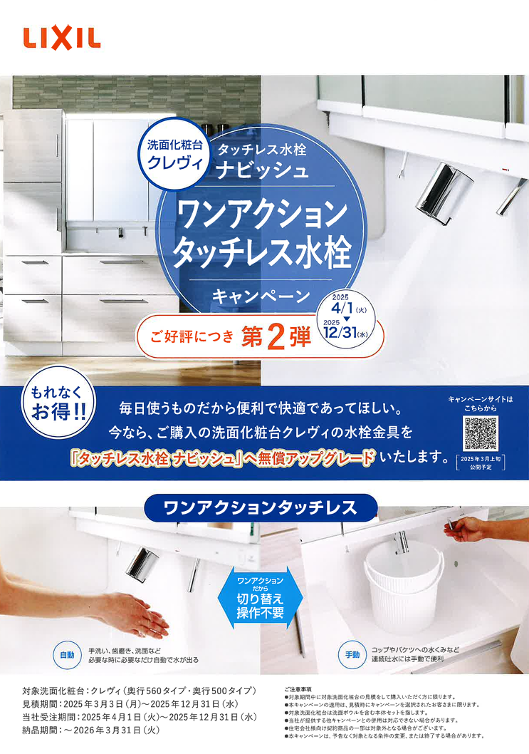 タッチレス水栓へ 無償アップグレード キャンペーンのご案内です。