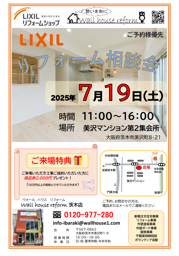 毎月開催している【リフォーム相談会】、7月も行います。