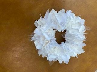 ドーナツ型の発泡スチロールに好きな色の布を挿していくだけで出来上がります♪