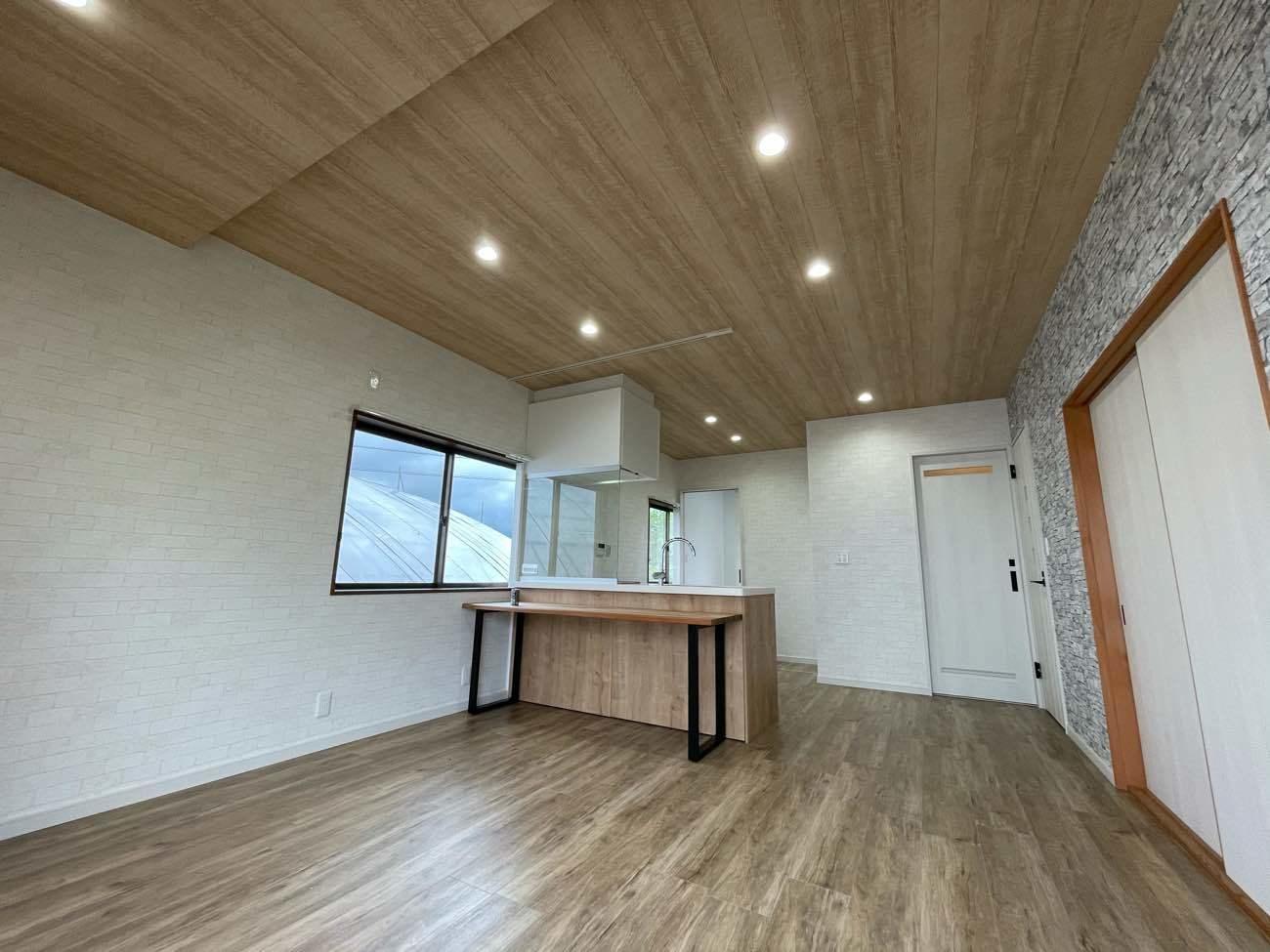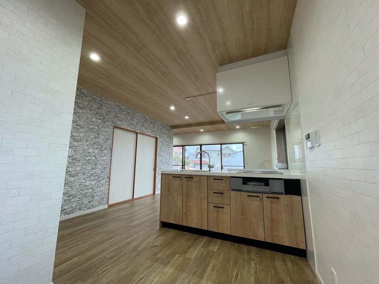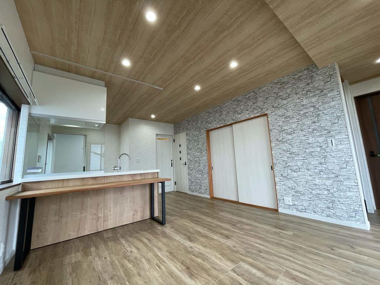 何もないスケルトンの状態から二世帯住宅にしました。 一つ一つのクロスや、水回り商品が とてもオシャレで素敵な空間になり, 縁側との間仕切りもなくなり、 広々とした空間になりました。