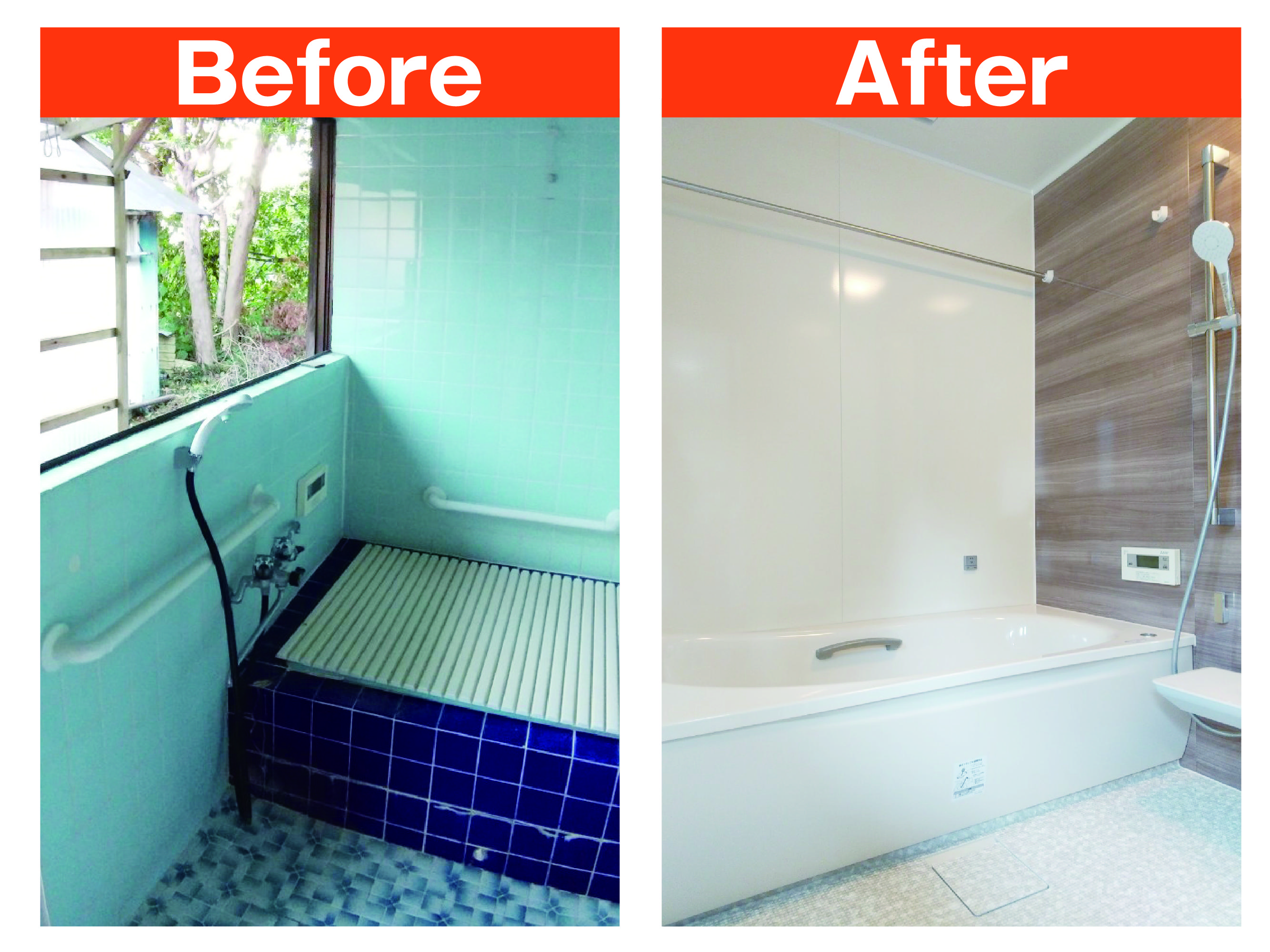 タイル張りの浴室からユニーットバスへ。 断熱性が上がって広くなったお風呂でゆったり温まって入れます。