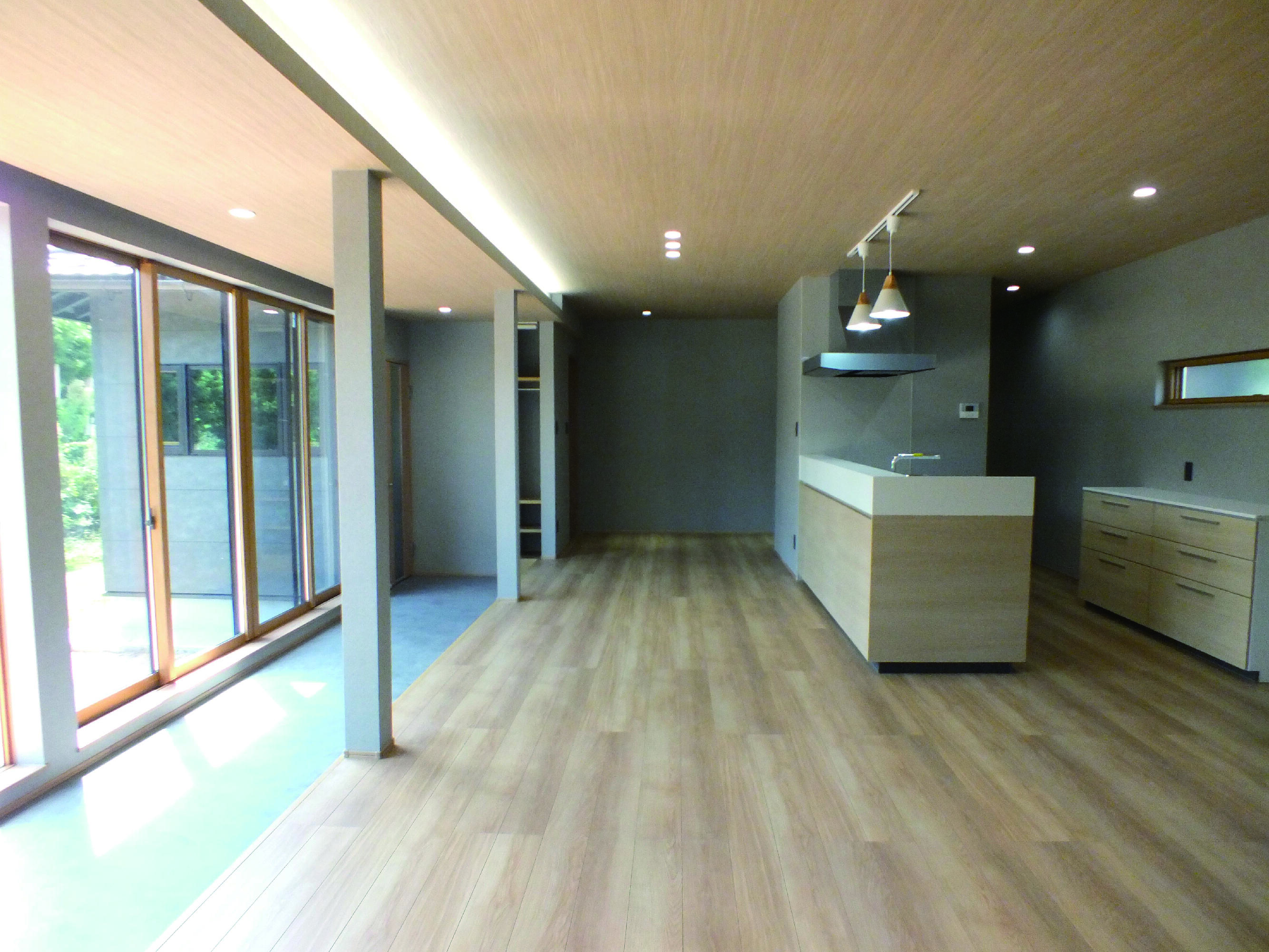 和室と縁側だったお部屋が広々とした 土間のインナーテラスがあるLDKへ大変身。 土間に面した大きな窓から光が差し込む明るい空間に。