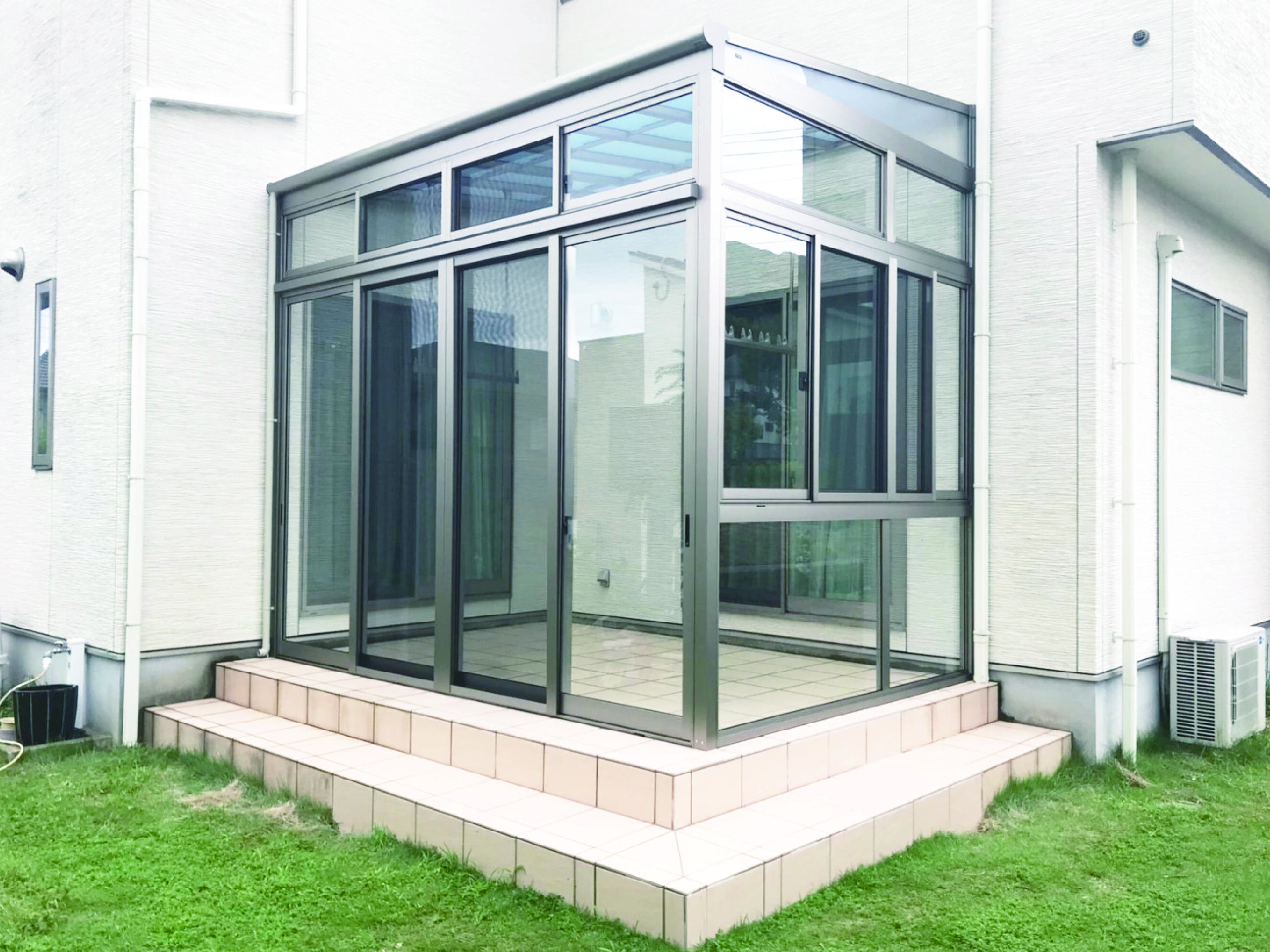 既存のタイルテラスを拡張して 広いサンルームができました。 雨や花粉を気にせず洗濯物を干したり お天気の良い日に日向ぼっこを楽しんだりと お庭の楽しみ方が広がります。