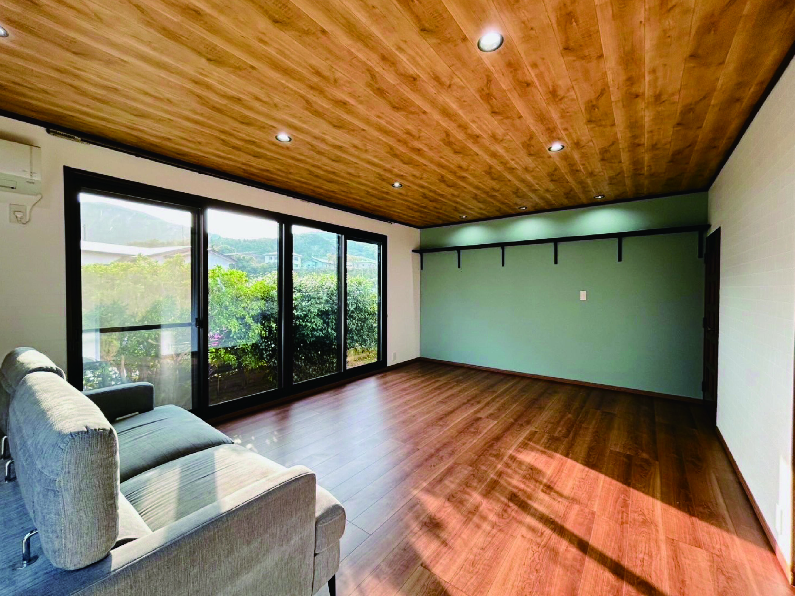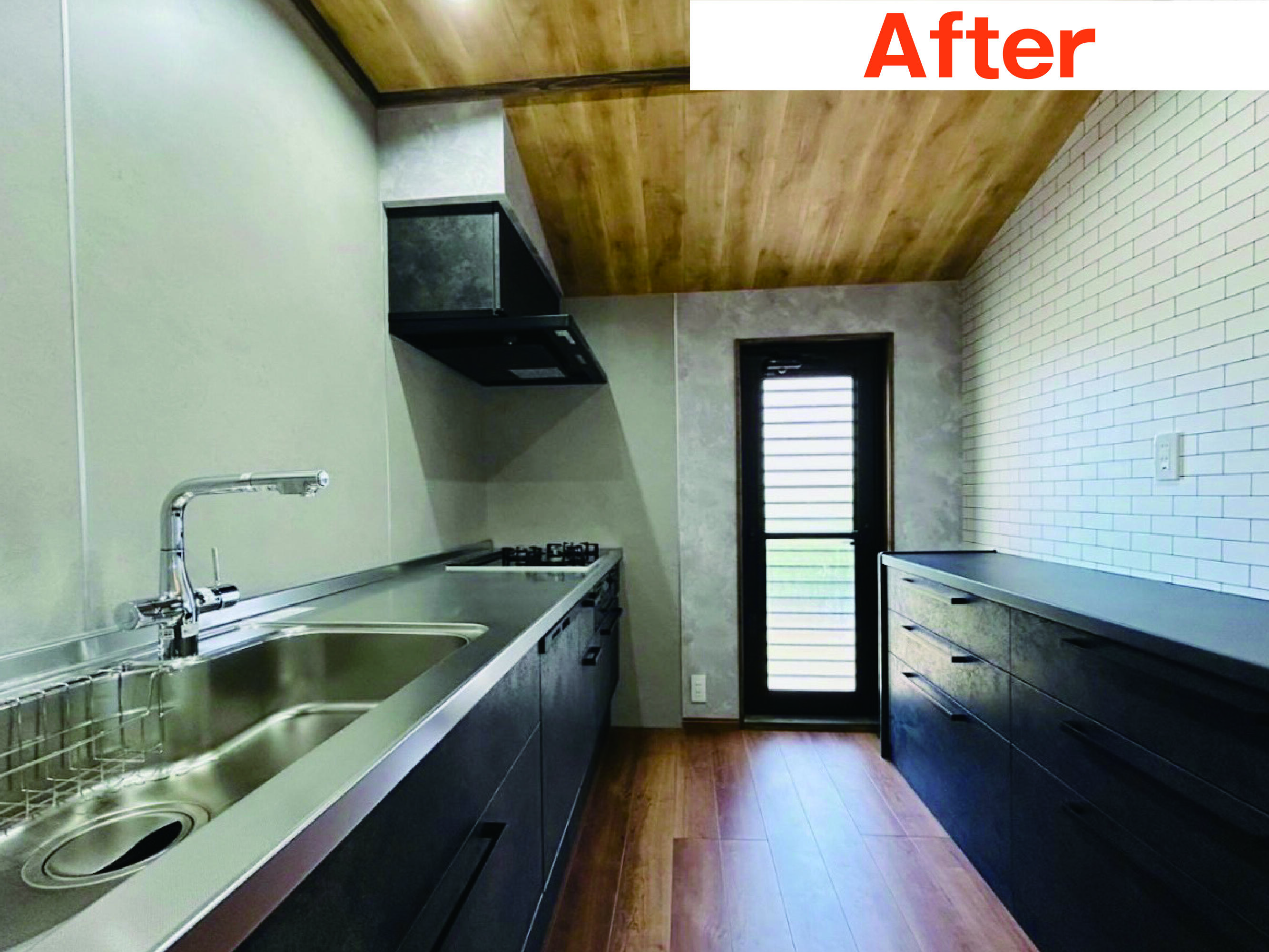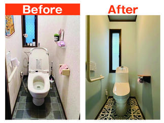 リフォームのご依頼をいただきました。 LDKは床や壁・天井のクロスを張替。ブルーグリーンのクロスをアクセントにチェリー柄の床と天井にも木目のクロスを使いナチュラルで落ち着く空間へ。 トイレの床はアンティークタイル調のクッションフロアで全体をブルーでまとめた清潔感があり爽やかな印象へ。 ご依頼ありがとうございました。