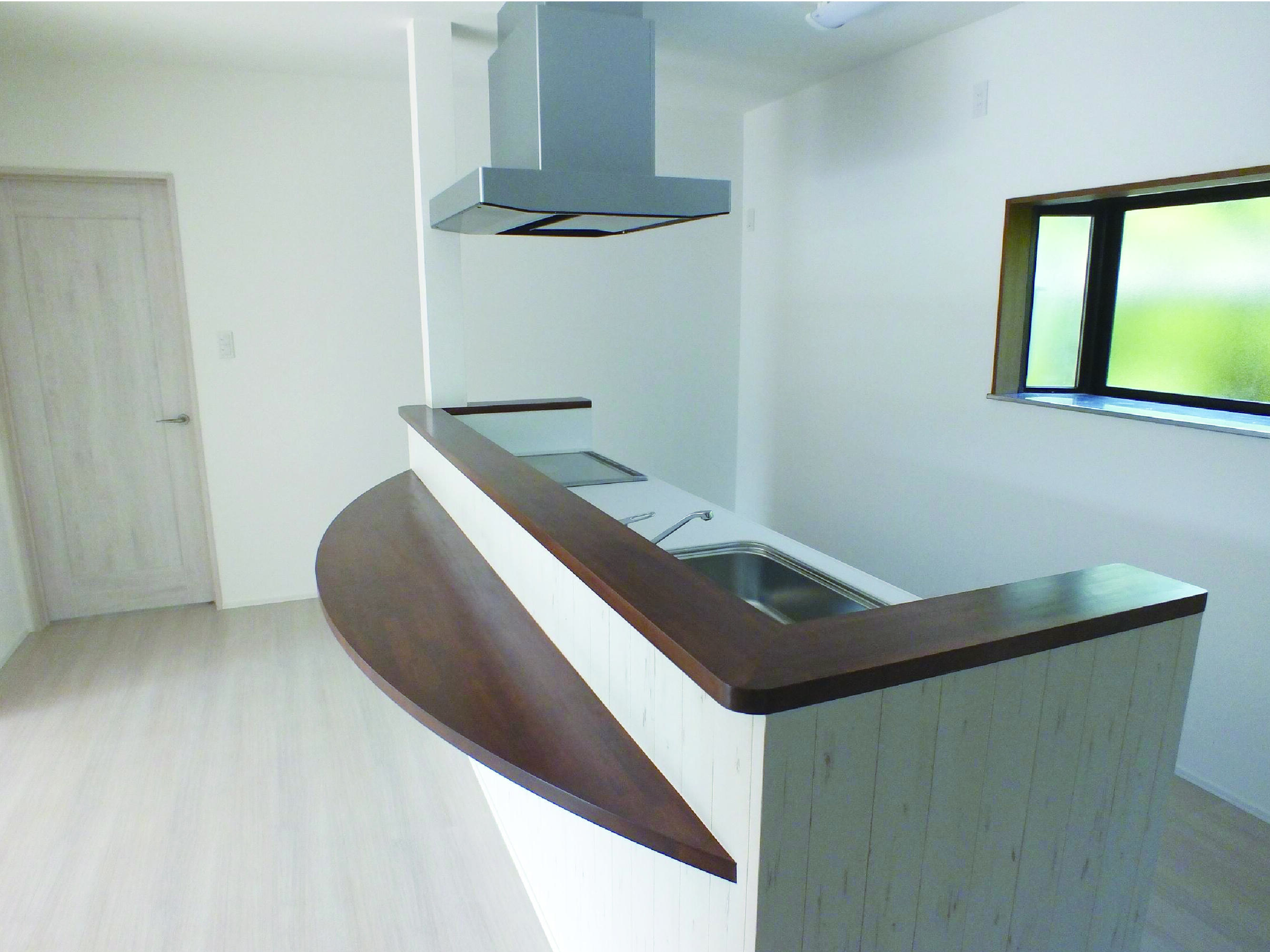 お施主様のご希望の造作洗面台やキッチンカウンター、トイレや子ども部屋のクロスにもこだわりおしゃれでかわいらしい雰囲気です。