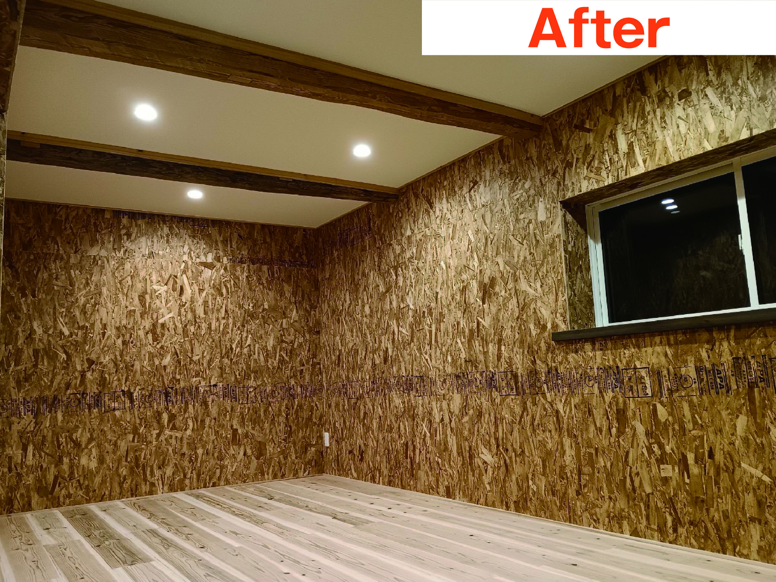 農業用倉庫の改修工事のご依頼をいただきました。 倉庫内は車やトラクターを置ける土間スペースと壁をOSB合板にしたスペースに分けました。 室内は子どもたちの遊び場やピアノスペースとしても使用する予定です。 トタン外壁も張り替えて使いやすい倉庫になりました。 ご依頼ありがとうございました。