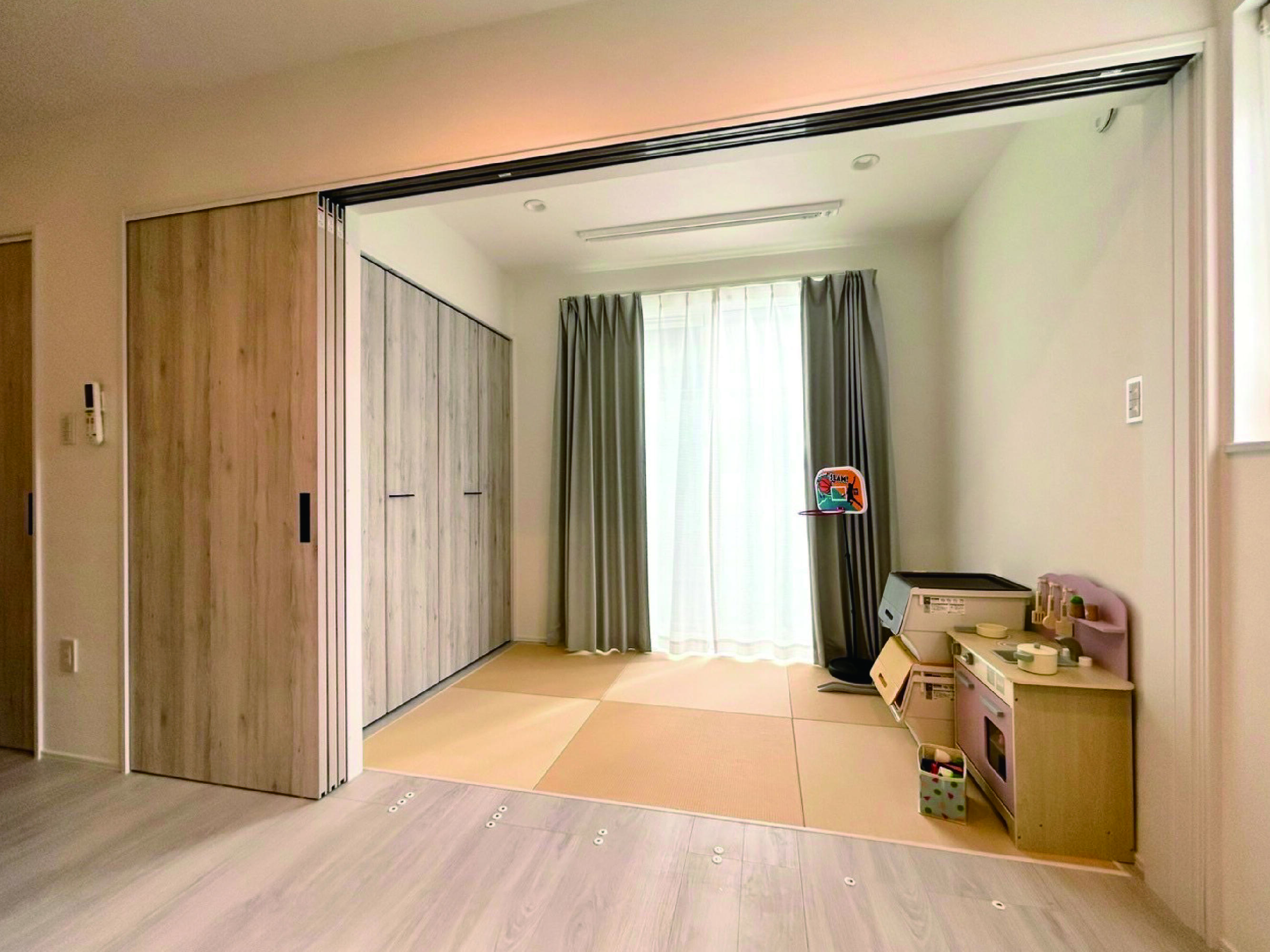 増築のご依頼をいただきました。 リビングを広げて和室と書斎をつくりました。 和室はキッズスペースや来客時の宿泊スペース、ホスクリーン付きで洗濯物干し場としても活用できます。 外観は既存のバルコニーも増築部の外壁と合わせて違和感のない仕上がりになっています。 ご依頼ありがとうございました。