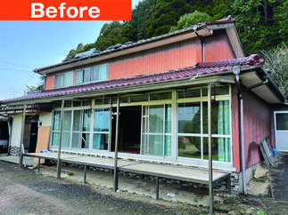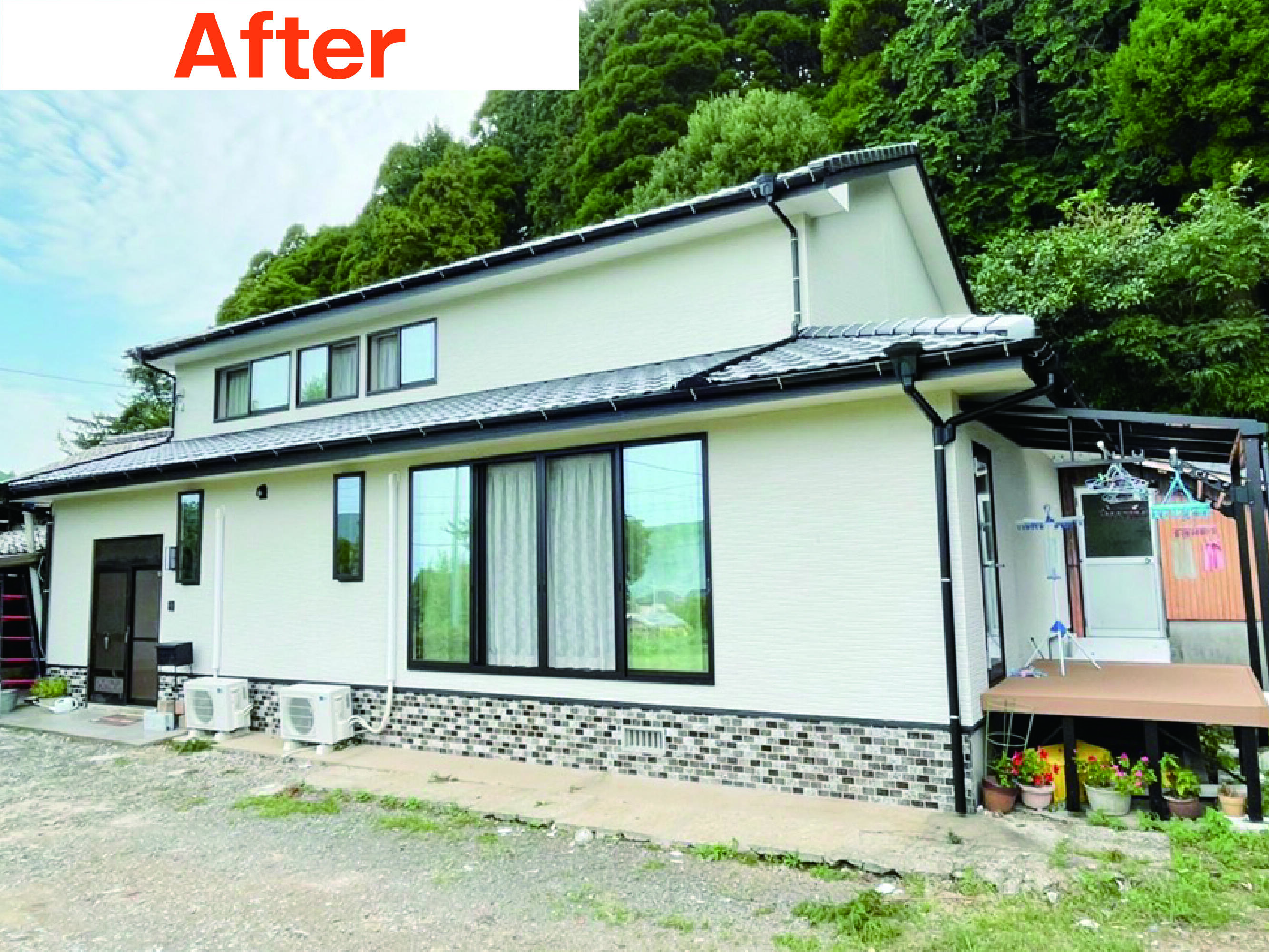 外観も白い外壁に変わり、広縁奥から洗濯物を干せるウッドデッキを付けました。