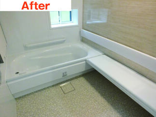 浴室はベンチカウンター付き。サポートバーも付いているのでゆったりと入浴を楽しめます。