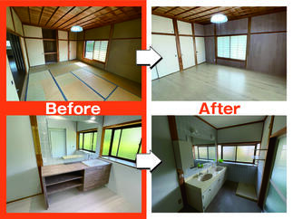 和室は畳を張り替え、1部屋は和室から洋室へ改修しました。