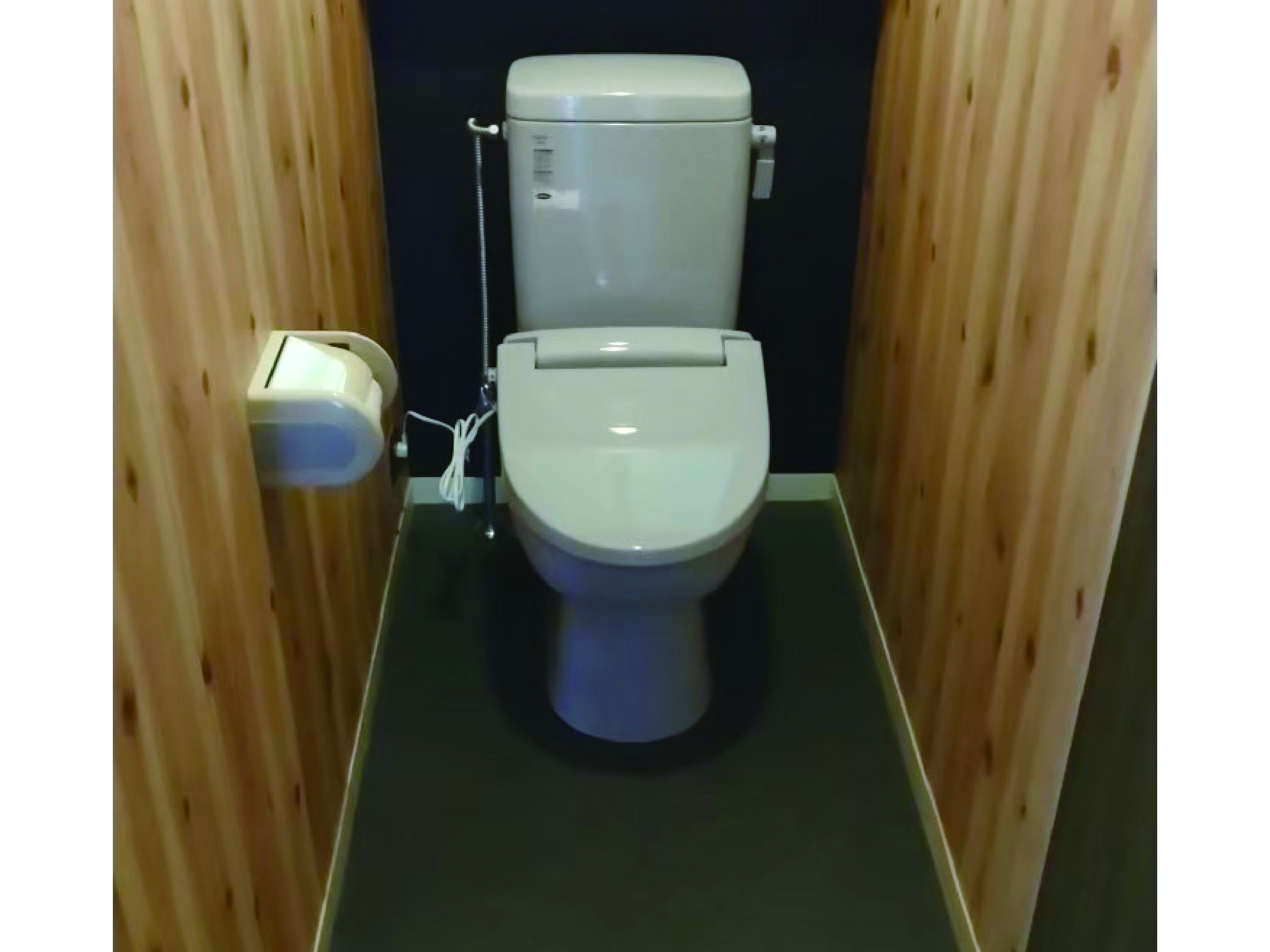 トイレの改修工事を行いました。 以前のトイレとはガラリと変わって床は黒のクッションフロア、木目調のクロスと背面の黒いクロスで和モダンに仕上げました。 ご依頼ありがとうございました。