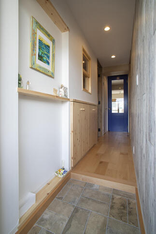 ヨットが趣味なので内装は海岸沿いのカフェをイメージして、お客様こだわりの床材には硬い材質で明るい雰囲気が特徴的なメープルの無垢板を採用しました。