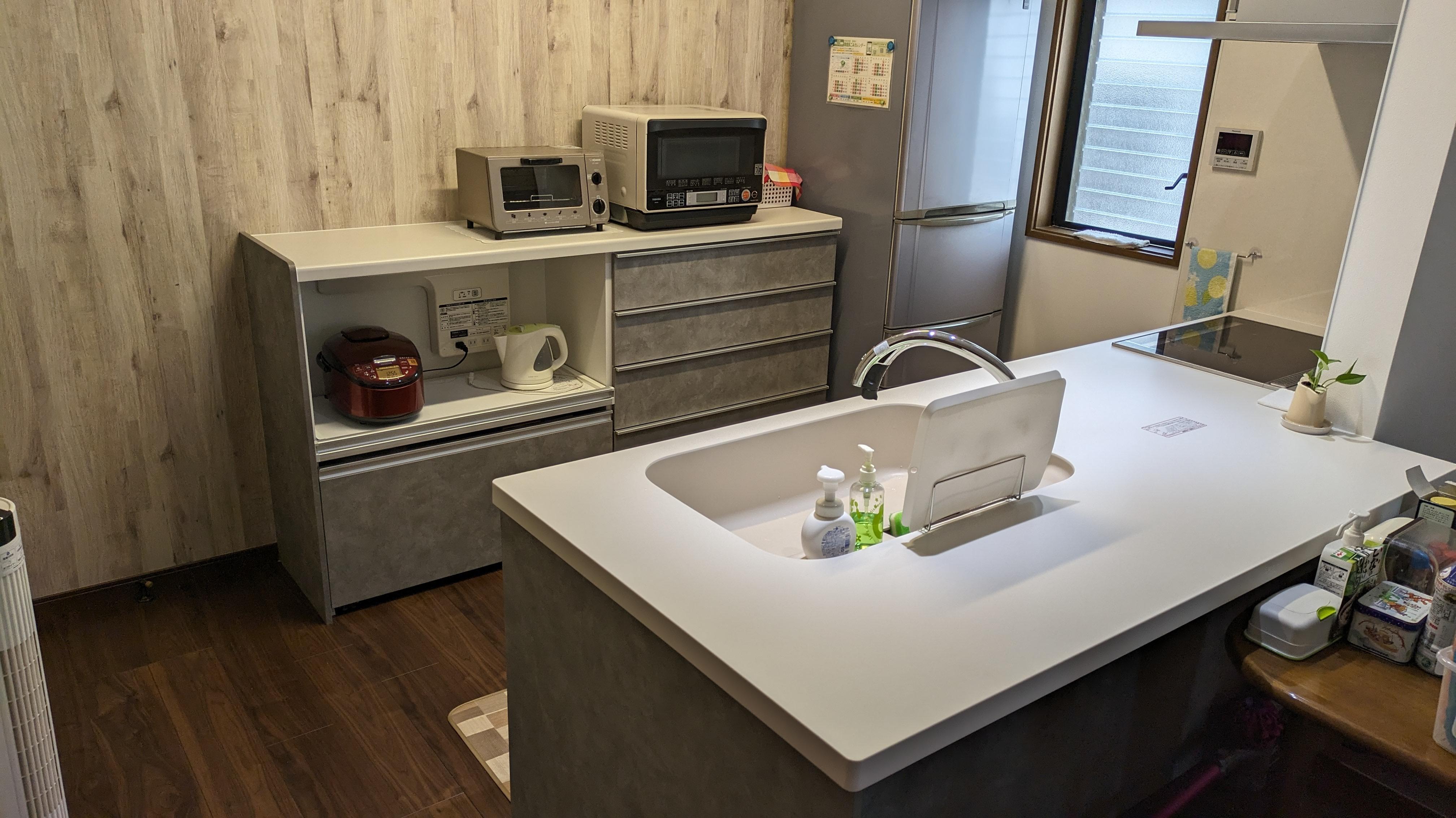 水回りの老朽化に伴い、LDKの内装工事とともにリフォーム! 閉鎖的だったキッチンは、明るく開放的になりました。 対面キッチンは、フラット対面を導入し、 ダイニングとの繋がりが大きくUP!