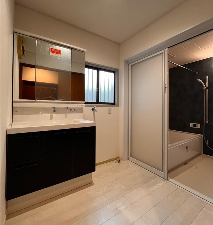 年数も経ち、水廻りのリフォーム工事を実施しました。 洗面と浴室はモノトーンで統一感のある一室になりました。 浴室はお客様の要望により、浴室内のシェルフは無くスッキリした仕上がりに。 ホワイトの面積が広いので明るく、フレッシュな気持ちになる洗面浴室になりました。 商品名 LIXIL リデア