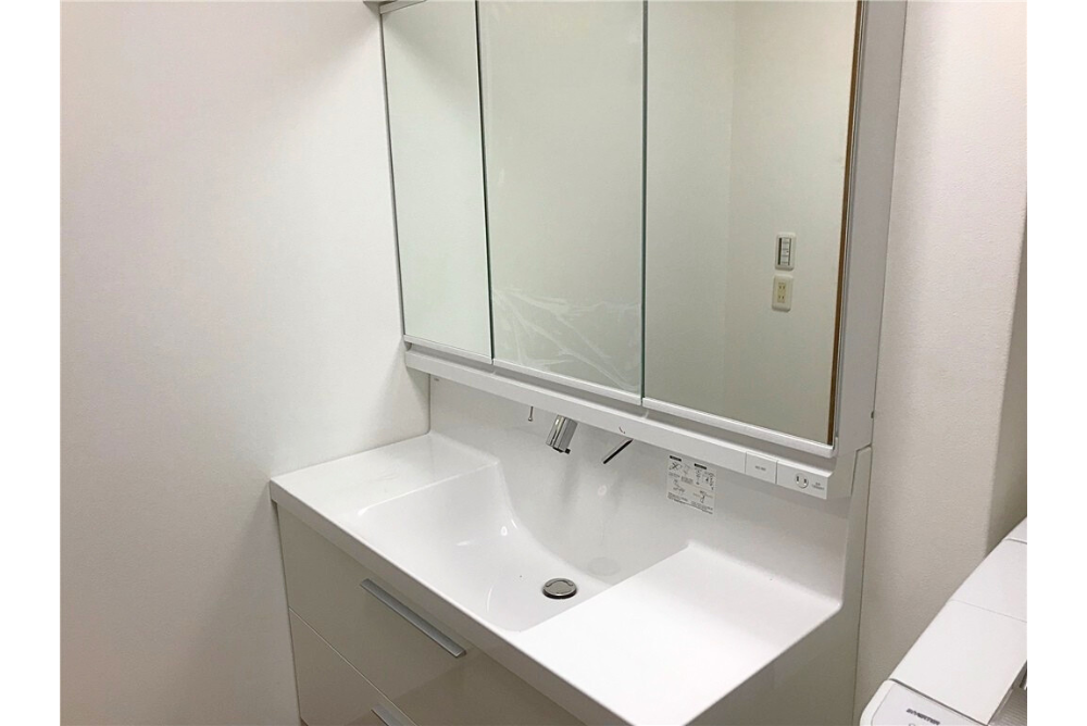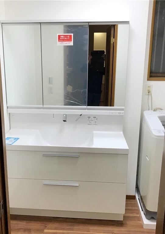 洗面とお風呂をガラリと一新。 今後の生活も考え、コンセントの位置を変更など! 洗面も大きなものに変わって圧巻!