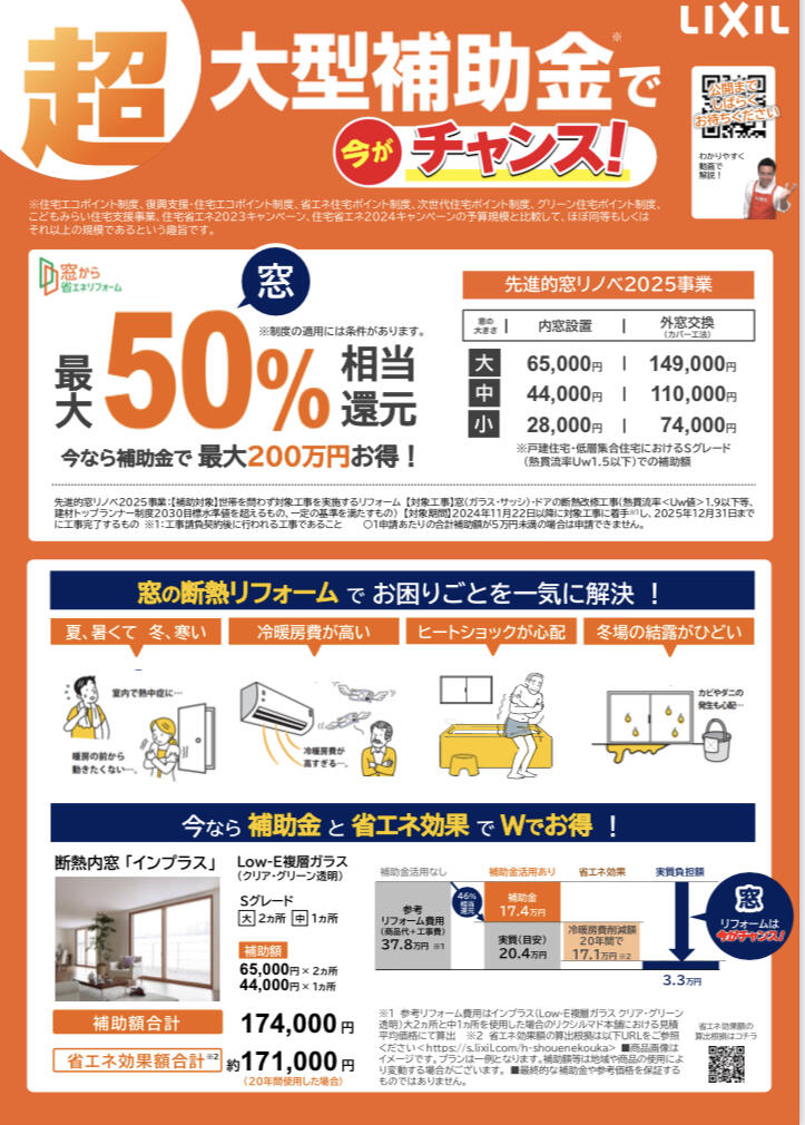 【リフォーム補助金】先進的窓リノベ2025事業のご紹介