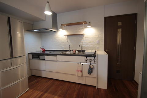 キッチン改装工事の他に、浴室改装工事と寝室の襖からクロゼット扉へ交換工事などをさせて頂きました キッチンはLIXILのリシェルでセラミック天板です。 壁面はキッチンパネルではなく、タイルを施工させて頂きました。 キッチン用の目地を使用することで、油汚れが浸透しにくくなるため、お手入れがしやすくなります