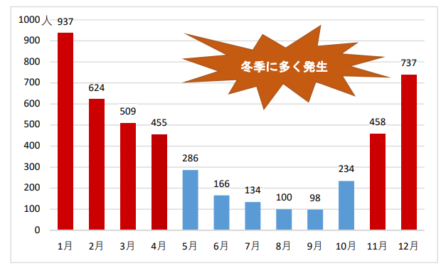 特に12月〜2月は死亡数が急増。寒さによる温度差が、体へのストレスとなるためです。