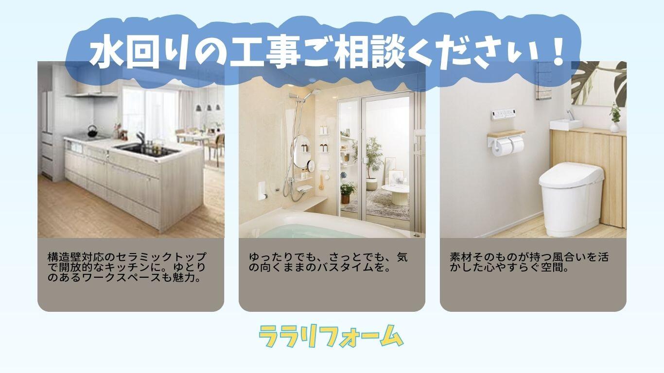 キッチンやお風呂、トイレ、洗面所などの水まわりは、毎日の暮らしに欠かせない場所。