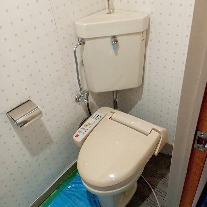 隅付きタンクのトイレから、すっきりお手入れらくらくな「アメージュ便器」に取替です。